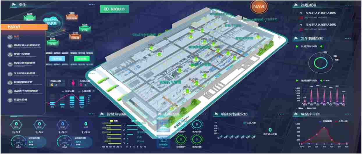 精确定位系统采用UWB定位技术,精度10厘米,数据回传零延时,支持无线定位方式。应用软件支持持PC端和移动端访问,并提供位置实时显示、历史轨迹回放、人员考勤、电子围栏、行为分析、智能巡检等功能。